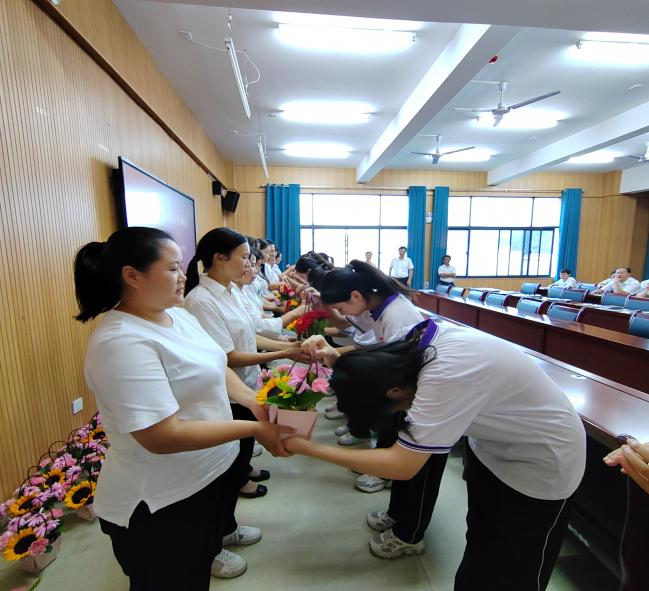 鮮花禮贊恩師,芬芳馥郁校園。活動(dòng)第六項(xiàng),少先隊(duì)員代表把滿懷敬意的一捧捧鮮花獻(xiàn)給了最敬愛(ài)的老師們。孩子們用一張張燦爛的笑臉,一聲聲純真的祝福,讓全體老師們深深感受到了作為一名教師的榮耀和幸福。