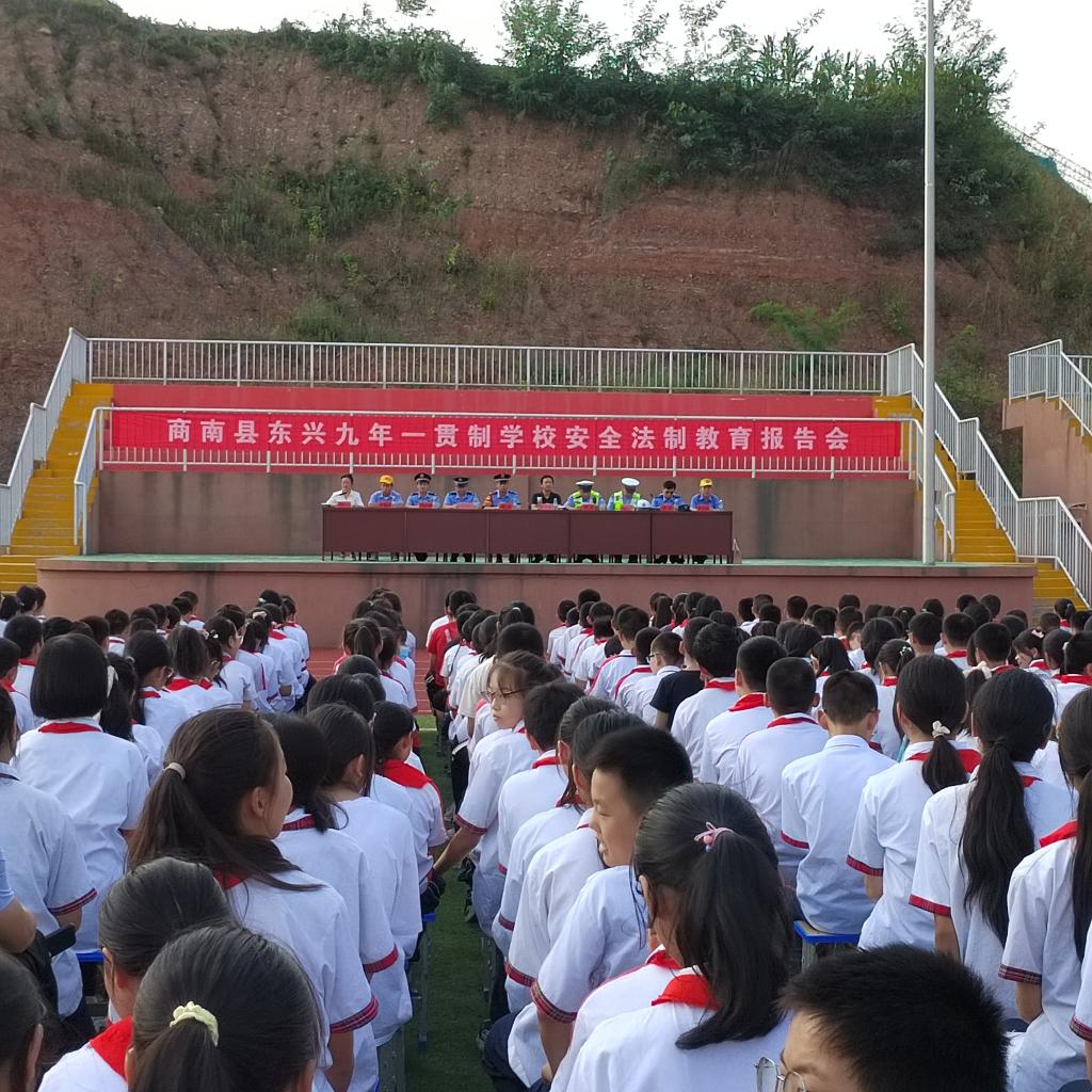 法制進(jìn)校園,安全護(hù)成長(zhǎng)。為進(jìn)一步推進(jìn)“平安校園”建設(shè),增強(qiáng)同學(xué)們的法制觀念和安全意識(shí)。營(yíng)造校園“學(xué)法、知法、懂法、守法”的良好氛圍。9月14日下午,商南縣東興九年一貫制學(xué)校邀請(qǐng)商南縣交警大隊(duì)、商南縣城關(guān)派出所、火車站派出所民警走進(jìn)校園,為師生舉辦一場(chǎng)安全法制教育報(bào)告會(huì)。大會(huì)由學(xué)校黨支部副書(shū)記劉瑞玲主持,全校1200余名師生參加。
