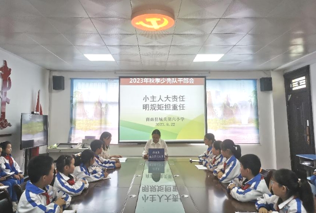 為做好新學(xué)期少先隊(duì)工作,提高少先隊(duì)員自主管理、自我服務(wù)的能力,充分發(fā)揮少先隊(duì)組織在構(gòu)建和諧校園中的重要作用,2023年9月22日下午,商南縣城關(guān)第六小學(xué)少先隊(duì)大隊(duì)部召開2023年秋季少先隊(duì)干部工作會議。會議由少先隊(duì)負(fù)責(zé)人趙菁菁主持,分管德育副校長李合芳參加了此次會議。