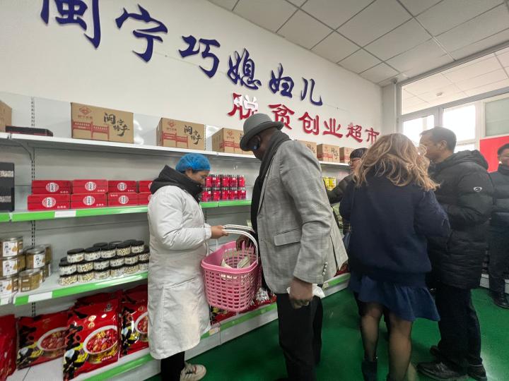 ▲駐華使節(jié)在“閩寧巧媳婦兒脫貧創(chuàng)業(yè)超市”購買寧夏特色農(nóng)產(chǎn)品(11月21日攝)。新華社記者 成欣 攝