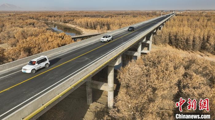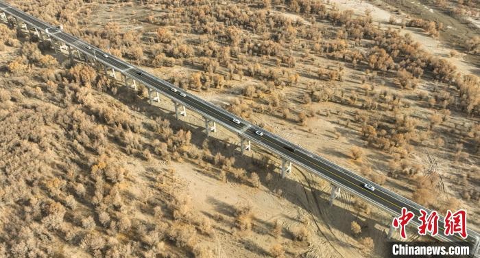 梁文彬表示,修高架橋跨越胡楊林比單純的修路投資要多投資1.3個億。