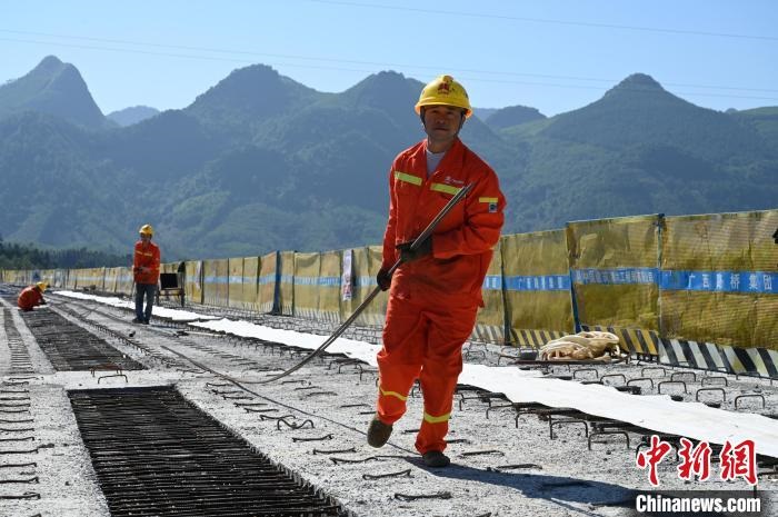 河池(宜州)西過境線高速公路納定大橋橋面濕接縫鋼筋施工現(xiàn)場。廣西交通運輸廳供圖
