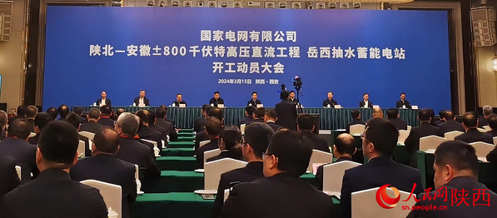 國家電網(wǎng)有限公司陜北—安徽±800千伏特高壓直流輸電工程、岳西抽水蓄能電站開工動員大會 。人民網(wǎng) 王麗攝