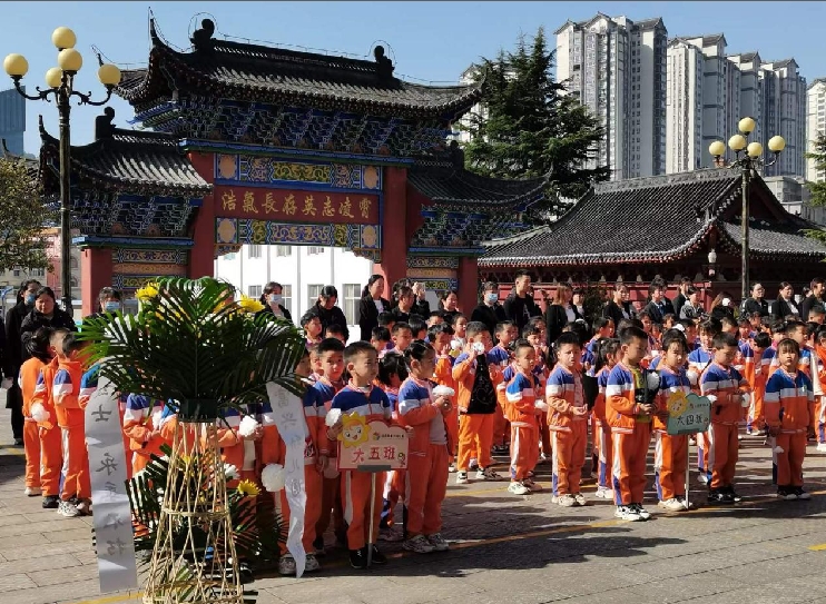 為落實(shí)立德樹(shù)人根本任務(wù),充分發(fā)揮校外德育實(shí)踐基地的教育作用,深刻緬懷革命先烈的豐功偉績(jī),使師幼受到一次生動(dòng)的革命精神洗禮,3月28日上午,陜西省商南縣富興幼兒園全體黨員教師及大班師幼徒步來(lái)到商南縣烈士陵園,組織開(kāi)展“清明祭英烈 薪火永相傳”清明節(jié)主題實(shí)踐活動(dòng)。