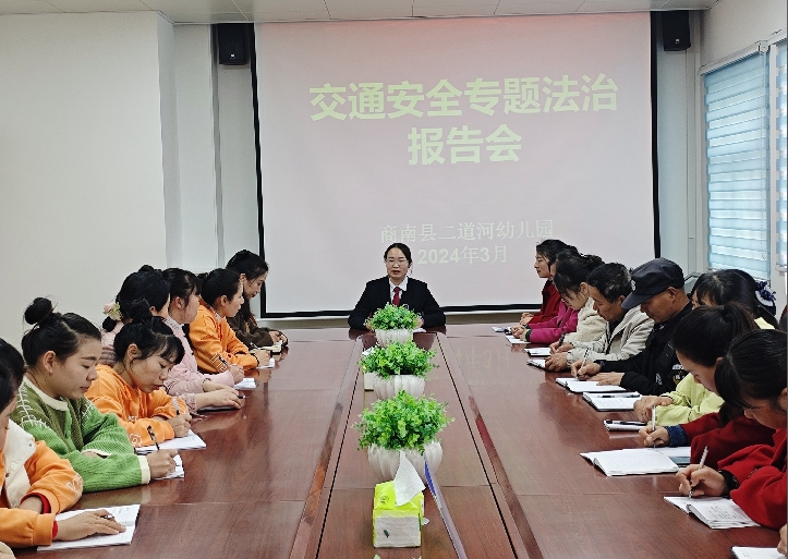 為進一步加強學校法治教育宣傳工作,提高廣大教師及家長的交通法律意識。近日,陜西省商南縣二道河幼兒園特邀請法治副校長(秦東律師事務所)江霞律師走進校園,開展交通安全專題法治教育宣傳活動。