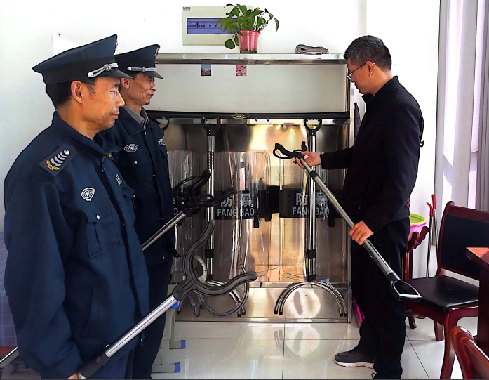 保衛(wèi)處胡主任再次對門禁“五步法”進行培訓。對安保人員儀容著裝,安保器械佩戴工作流程等提出明確要求,全面細致講解了反恐防暴器械使用方法及注意事項。