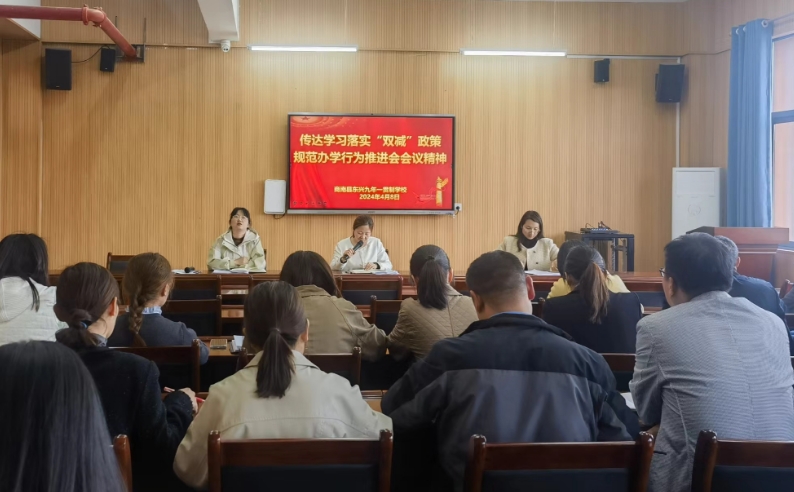 自“雙減”政策發(fā)布實(shí)施以來(lái),陜西省商南縣東興九年一貫制學(xué)校深刻領(lǐng)會(huì)“雙減”工作重大意義,認(rèn)真貫徹落實(shí)政策要求。4月8日,商南縣東興九年一貫制學(xué)校召開(kāi)2023-2024學(xué)年度第二學(xué)期“雙減”工作推進(jìn)會(huì),副校長(zhǎng)同宏穎傳達(dá)了4月3日商南縣科教體局的“雙減”工作會(huì)議精神。校長(zhǎng)李勝武對(duì)學(xué)?!半p減”和“課后服務(wù)”工作開(kāi)展情況進(jìn)行總結(jié),對(duì)下一步工作安排部署。