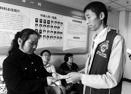 一些得知情況的愛心人士來到醫(yī)院看望他,愛心人士賈小剛捐款2000元,“陳緒水和他的志愿隊從事環(huán)保志愿工作和幫助失學(xué)兒童、因病致貧家庭,幫扶了三四千人,現(xiàn)在他遇到難處,大家應(yīng)該幫他挺過難關(guān)?!?4歲的李靠在醫(yī)院照顧堂哥,聽說此事后立刻發(fā)到朋友圈,“希望把這份愛心傳遞下去,好人應(yīng)該有好報?!?