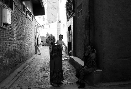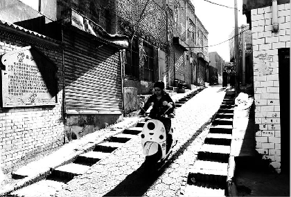 初入民居深巷,有如置身迷宮,在原地轉(zhuǎn)圈而找尋不到出口是常有的事兒。智慧的維吾爾族人為了方便出入,便在地上做起了文章。地面上鋪就的六角形地磚即為主路,偏離而去便是死胡同。