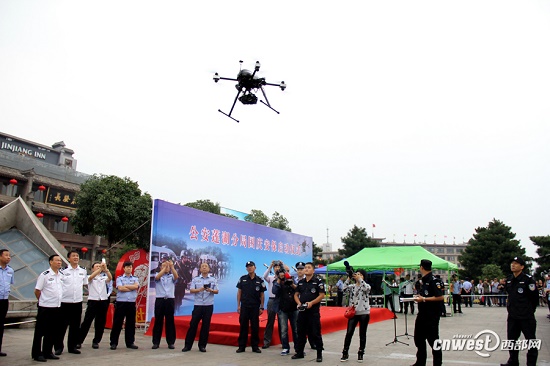 9月29日下午,一架無人機出現(xiàn)在了鐘樓上方,盤旋發(fā)出的聲音引起了市民及游客的注意。細(xì)看機身印有“蓮湖公安”字樣,原來這是西安公安蓮湖警方正在舉行的國慶安保反恐演練。空中飛行的是西安公安首次引入的無人偵察機,該無人機可以快捷高效地完成偵察固定證據(jù)、現(xiàn)場態(tài)勢監(jiān)控、安保巡邏、搜捕搜救、空中投擲等各種實戰(zhàn)任務(wù),這套設(shè)備將投入到“十一”假期安保中。