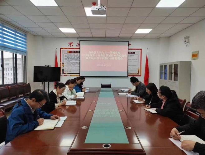 4月19日,陜西省商南縣東興九年一貫制學(xué)校召開教育領(lǐng)域群眾身邊腐敗和作風(fēng)問題集中整治工作部署會,深入貫徹習(xí)近平總書記和黨中央決策部署,認(rèn)真落實商洛市委、商南縣委、縣科教體局黨委工作要求,對全校集中整治工作進行系統(tǒng)安排,學(xué)校黨支部書記、校長李勝武,黨支部副書記劉瑞玲出席會議并講話。