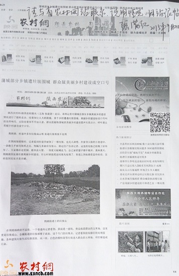 9月20日,陜西農村網一篇題為《蒲城部分鄉(xiāng)鎮(zhèn)遭垃圾圍城群眾疑美麗鄉(xiāng)村建設成空口號》對蒲城縣部分鄉(xiāng)鎮(zhèn)垃圾亂放行為進行了報道,在社會上引起很大反響,當?shù)厝罕娂娂娏粞裕M嘘P部門能引起重視。