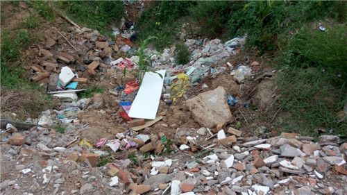 蘇坊鎮(zhèn)宣傳標(biāo)語不遠處的垃圾