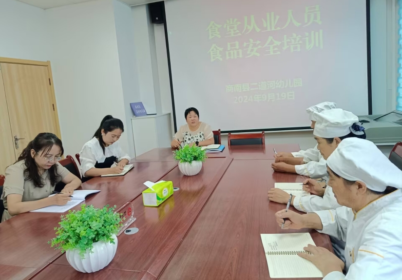 為全面提升學(xué)校食堂管理及從業(yè)人員的食品安全意識(shí),加強(qiáng)食品安全工作,更好地保障師幼舌尖上的安全,9月19日,陜西省商南縣二道河幼兒園對(duì)食堂從業(yè)人員進(jìn)行了食品安全培訓(xùn)。