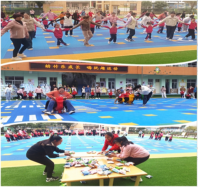 大家伴隨著跳躍的音符,歡快的旋律、活力四射的親子律動(dòng),點(diǎn)燃了大家的激情,隨著趣味游戲《龍舟快快跑》 《零食大作戰(zhàn)》更是將活動(dòng)的氛圍推向了高潮,更加吹響了幼兒、家長、老師為班級(jí)而戰(zhàn)的號(hào)角。