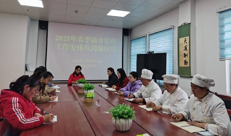 為做好新學期幼兒園食品安全管理工作,保障師幼在園飲食安全,增強食堂從業(yè)人員的食品安全防范意識。近日,陜西省商南縣二道河幼兒園開展了2025年春季膳食管理工作部署會,并組織了相關人員進行崗前培訓,全力守護幼兒“舌尖上的安全”。