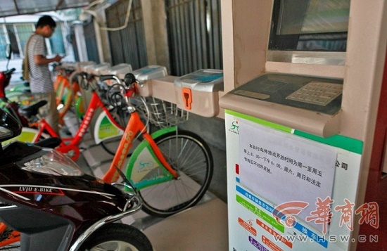 “按照統(tǒng)一的規(guī)定,不是早上6時(shí)30分到晚上9時(shí)都可以借車、還車的嗎?為什么現(xiàn)在連還都不讓我還了?”5日晚上7時(shí)許,推著車子站在長(zhǎng)延堡街辦門口的市民張女士覺得很詫異。