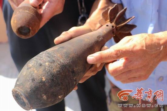 紀(jì)念抗日戰(zhàn)爭(zhēng)勝利70周年前夕,陜西省吳堡縣石城管理所在征集石城文物中,從城里村村民王志西手中征集到兩枚當(dāng)年日軍炮擊石城的啞彈,為研究石城歷史和抗戰(zhàn)時(shí)期抵抗日軍提供了重要的實(shí)物證據(jù)。