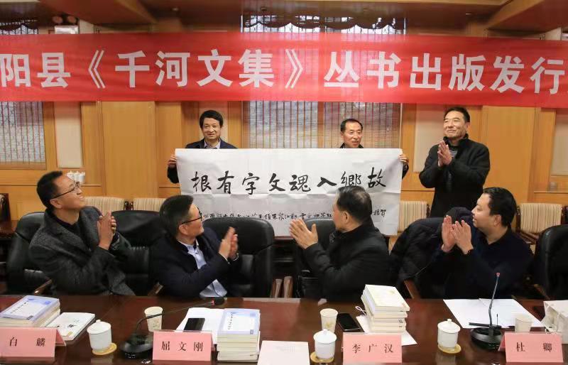 《千河文集》共7本,由團(tuán)結(jié)出版社出版發(fā)行。分別是:楊江海的《千山拾遺》、楊惠強(qiáng)的《胎記》、楊紅芳的《且放白鹿青崖間》、朱維的《九品官上樹》、王艾迎的《無言的暖鍋》、魏愛云的《在自己的小城里旅行》、鄭江泉的《觸摸呢喃的土地》。