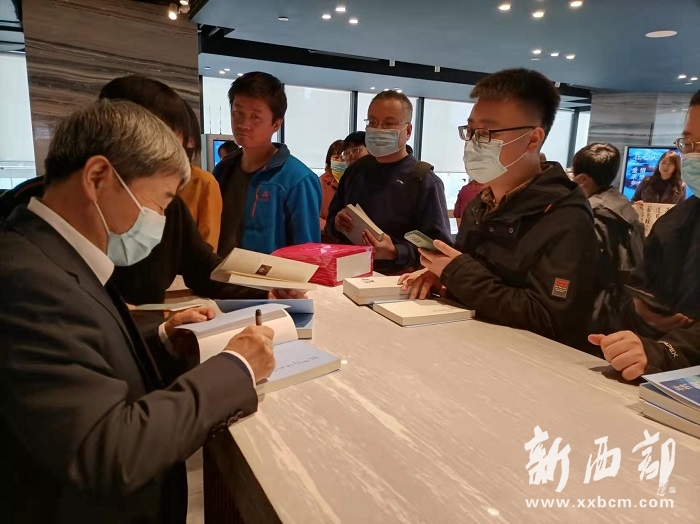 ▲朱鴻(左一)為讀者簽名(圖片由朱鴻提供)