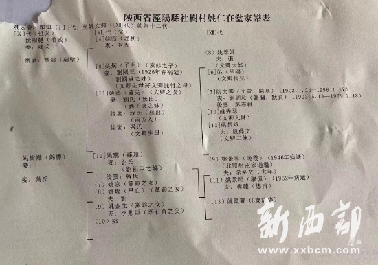 ▲陜西省涇陽縣社樹村姚仁在堂家譜表(局部圖片由黃天順提供)