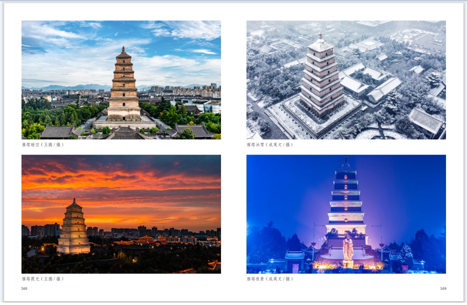 全書有750+張精美攝影作品,700頁全彩精裝,用鏡頭構(gòu)筑錦繡長安。精選俯瞰、全景、細節(jié)等不同的角度以及不同季節(jié)的高清圖片,多維度構(gòu)筑西安 “史話”,眾創(chuàng)西安文物古跡影像志;29條尋訪線路,全方位帶你“走”西安。