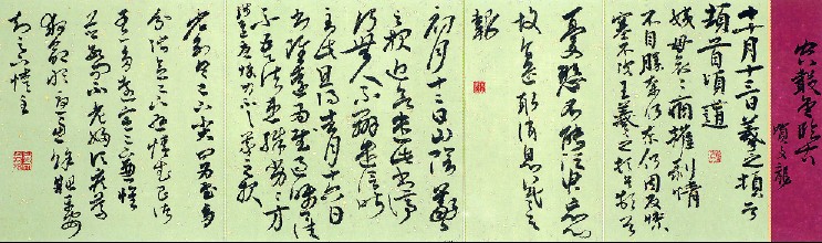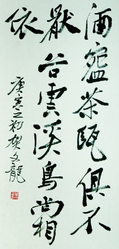 長期以來,重視中國書畫藝術(shù)的文化品格,主張?jiān)谟兴鶎9サ幕A(chǔ)上詩書畫印兼修,藝道并進(jìn);寫意花鳥筑基于青藤白陽,廣參八大、石濤、趙之謙、吳昌碩、齊白石、潘天壽、張立辰諸家家法。書法諸體皆習(xí),于篆、隸、真、行、草諸體皆有深悟,尤其擅長秦篆和行草書。