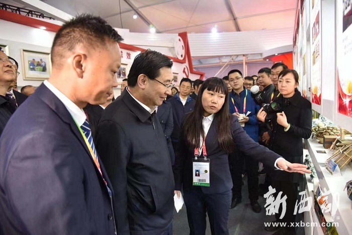 陜西省委書記胡和平,省委副書記賀榮,省委常委、組織部部長(zhǎng)張廣智,省政協(xié)副主席王衛(wèi)華,省委組織部一處楊孝武處長(zhǎng)等領(lǐng)導(dǎo)今天先后來(lái)到展館視察,瓦鋪村村委會(huì)主任李支清與周梅共同向參觀者介紹村里的扶貧及產(chǎn)業(yè)情況。