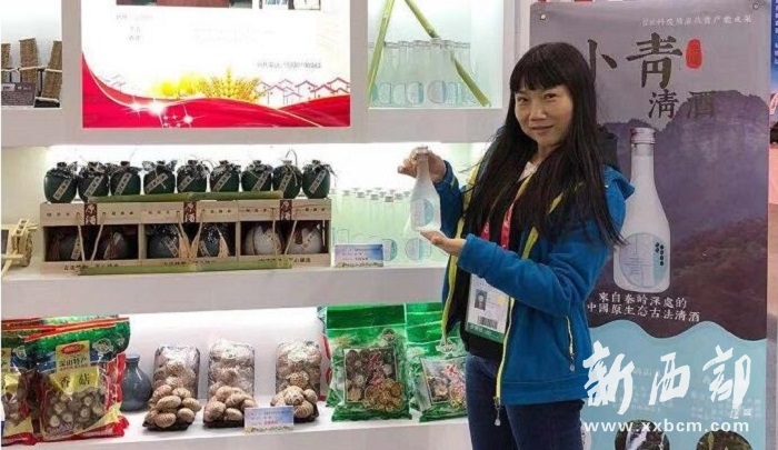 在展覽中,周梅帶來(lái)了陜西省社會(huì)科學(xué)院扶持的瓦鋪清酒與富硒香菇。瓦鋪村位于安康市漢濱區(qū)茨溝鎮(zhèn)北部山區(qū),是革命老區(qū)和省級(jí)特別貧困村。