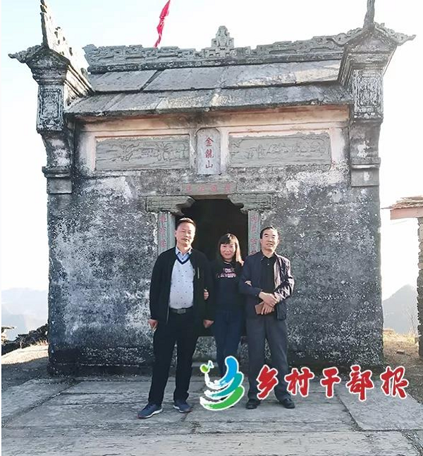 周梅(中)和村支書(shū)唐國(guó)斌(右)、村主任李支清(左)在金龍山頂考察調(diào)研旅游資源時(shí)合影
