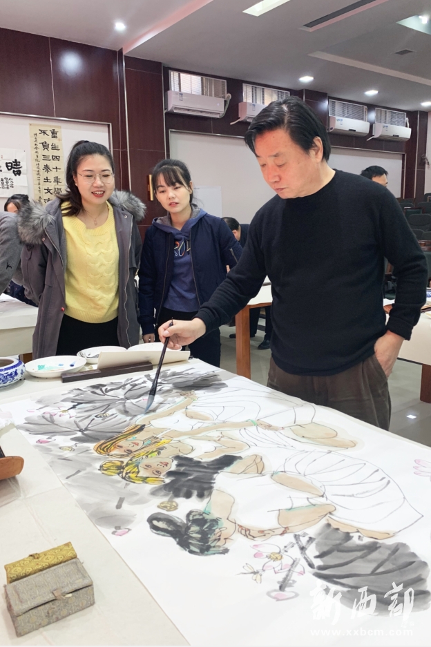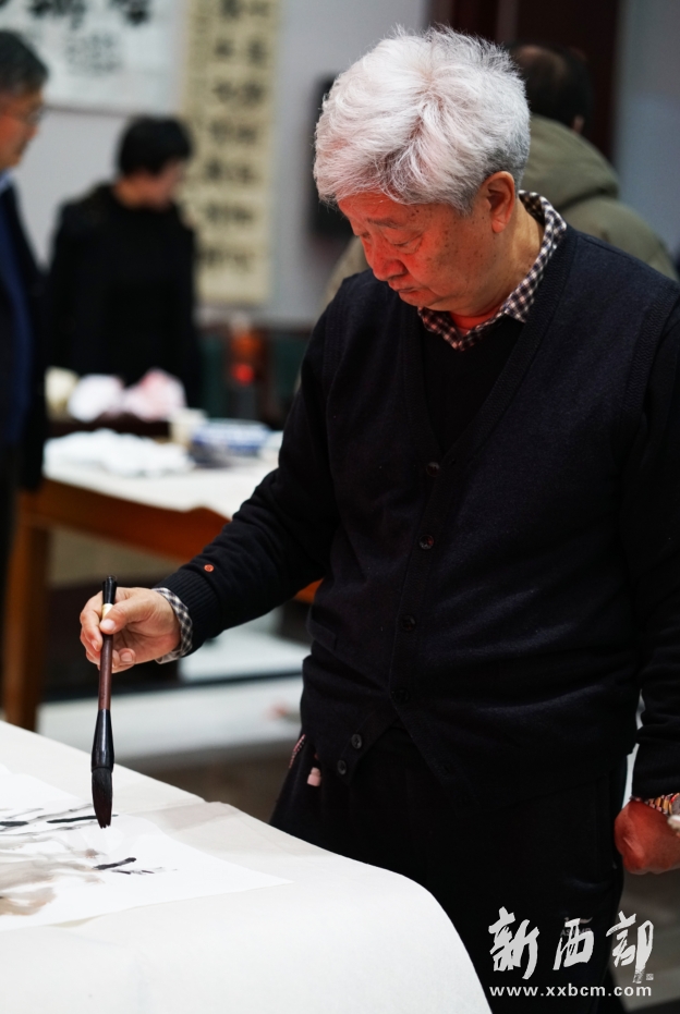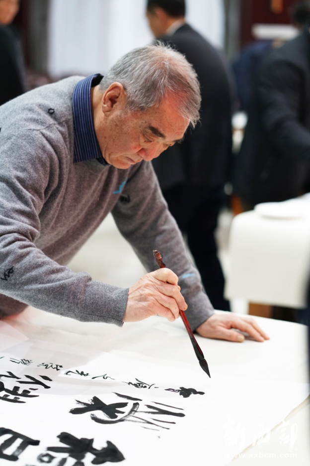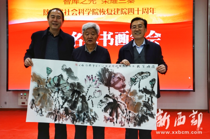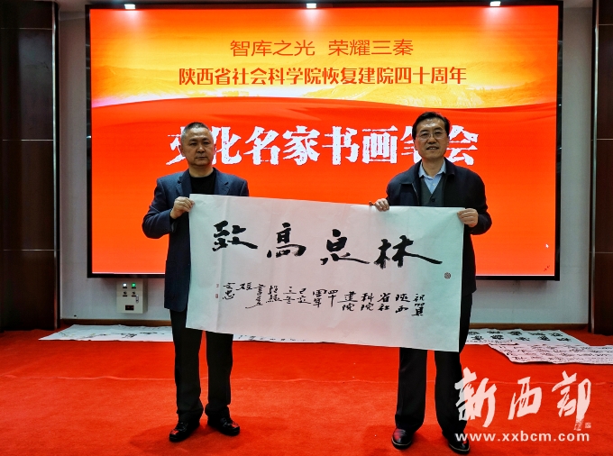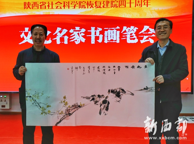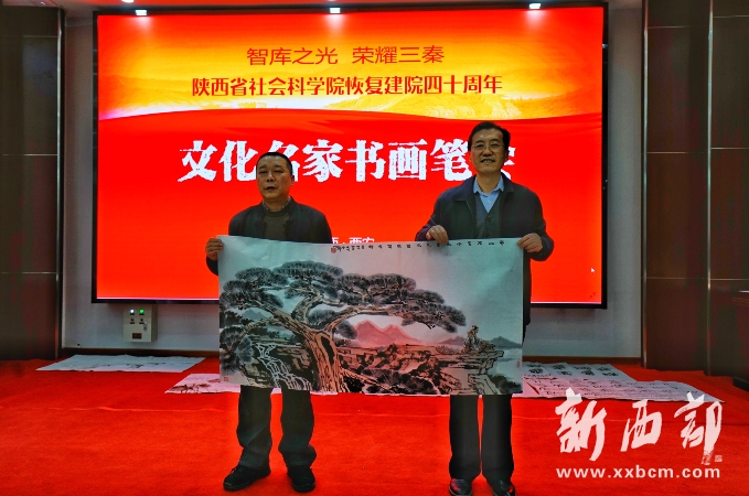 新西部網(wǎng)西安12月5日消息(記者王順利)“智庫之光榮耀三秦·文化名家書畫筆會(huì)”今天在陜西省社會(huì)科學(xué)院成功舉辦,中國美術(shù)家協(xié)會(huì)理事、陜西省美術(shù)家協(xié)會(huì)名譽(yù)主席、長安畫派藝術(shù)研究院院長、著名畫家趙振川,陜西省書法家協(xié)會(huì)名譽(yù)主席、陜西省望賢書學(xué)會(huì)會(huì)長、著名書法家李成海,陜西師范大學(xué)教授、著名秦隸研究專家李甫運(yùn),陜西省書法家協(xié)會(huì)副主席、陜西師范大學(xué)美術(shù)學(xué)院兼職教授、著名書法家路毓賢,陜西省文聯(lián)副主席、陜西省作家協(xié)會(huì)副主席、著名作家高建群,陜西省美術(shù)家協(xié)會(huì)理事、陜西國畫院特聘畫家王松,陜西省作家協(xié)會(huì)副主席、著名作家方英文,陜西省美術(shù)家協(xié)會(huì)副主席、陜西省美術(shù)博物館原館長、著名畫家羅寧,陜西師范大學(xué)美術(shù)學(xué)院教授、碩士生導(dǎo)師、著名畫家孫文忠,陜西省美術(shù)家協(xié)會(huì)理事、陜西省山水畫研究會(huì)主席、西安交通大學(xué)城市學(xué)院藝術(shù)設(shè)計(jì)系主任、著名畫家解安寧,陜西省美術(shù)家協(xié)會(huì)副主席、西安中國畫院院長、著名畫家王犇等省內(nèi)書畫界、文學(xué)界知名藝術(shù)家和作家蒞臨筆會(huì)。