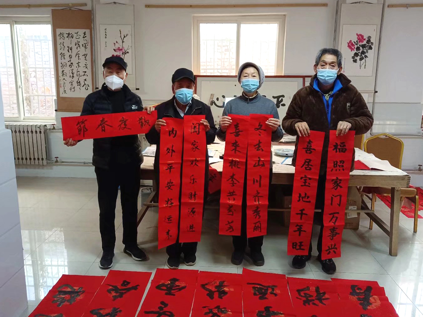 瓦鋪村是陜西省社會科學院駐點幫扶村。近年來,每逢春節(jié)到來之際,社科院機關黨委和離退中心都要在瓦鋪村舉行慰問活動,并組織院內書畫愛好者為村民書寫春聯。今年因疫情影響,慰問活動無法在瓦鋪村進行,院機關黨委專職副書記李冰聯系駐村第一書記曹林得知,村民還像往年一樣,期盼著省城“親戚”的春聯。李冰立即和離退中心主任(書畫藝術中心秘書長)牛涇民聯系,商議解決辦法。之前,雖已經準備了100多幅春聯,但還差200幅,牛涇民主任“雙管齊下”,一方面積極組織居住社科院內的老同志在書畫室連夜加班,另一方面動員院外居住的李巍、馬建飛和魏雯等老師在家里加班書寫春聯。