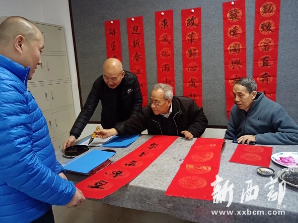 2023年新春佳節(jié)來臨之際,陜西省社會科學(xué)院書法專家及書法愛好者為院扶貧幫扶村——安康市漢濱區(qū)茨溝鎮(zhèn)瓦鋪村書寫新春對聯(lián),向村民和奮戰(zhàn)在幫扶一線的本院工作人員送去節(jié)日問候。(社科院離退中心)