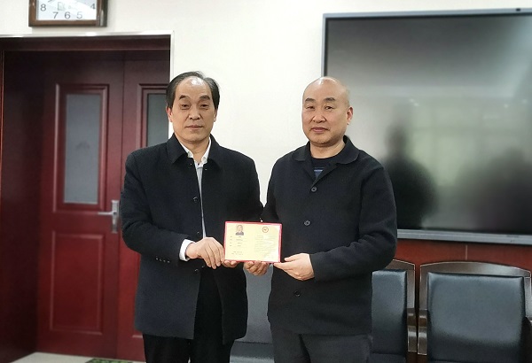 楊遼為孫濤頒發(fā)聘書
