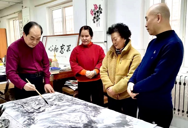 會后,書畫藝術(shù)家們來到書畫工作室開展了書畫創(chuàng)作交流活動。