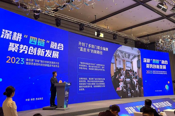 6月3日,以“深耕‘四鏈’融合 聚勢創(chuàng)新發(fā)展”為主題的秦創(chuàng)原“四鏈”融合創(chuàng)新發(fā)展研討會(huì)暨陜西首部科技創(chuàng)新藍(lán)皮書發(fā)布會(huì)在西咸新區(qū)舉辦。百余名國內(nèi)知名專家學(xué)者、企業(yè)家,高校院所、創(chuàng)投企業(yè)代表共聚一堂,圍繞促進(jìn)秦創(chuàng)原“四鏈”融合碰撞思維火花,匯集各方智慧,為推動(dòng)區(qū)域高質(zhì)量發(fā)展建言獻(xiàn)策。