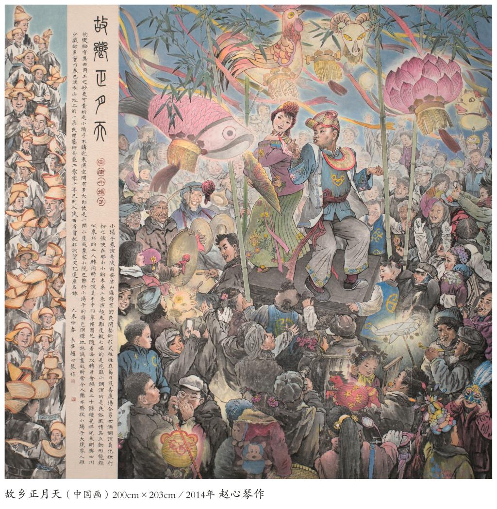 不過我們在看趙心琴作品中的童趣時,也不能只看形象,更應(yīng)該去看到她“至純”和“至愛”童心的繪畫性,她不去追求或者刻意雕琢畫面的完整性,反而以“隨心所欲”的心態(tài)來繪畫,那種久違的出世感,讓人頗為驚嘆,仿佛是一種最純潔心靈的釋放,這或許才是作品最有價值的地方?!豆枢l(xiāng)正月天》、《家庭作坊》等作品,將當(dāng)年安康鄉(xiāng)下大人們的裝束、自然的情態(tài),巧妙而真實地入畫,迥異于不同地域人群的生活習(xí)俗、民間傳統(tǒng),讓她對吃苦耐勞,勤謹(jǐn)節(jié)儉的安康人民油然而生敬意。作品中,生活、勞作中的人們追求美好、質(zhì)樸、恬靜,于是就有了趙心琴筆下大人們的形象,顯得更詩意化,更具唯美特質(zhì)。當(dāng)然,這與她小時候在安康的成長經(jīng)歷分不開,其中的筆情墨趣,更多了一份用心與講究。