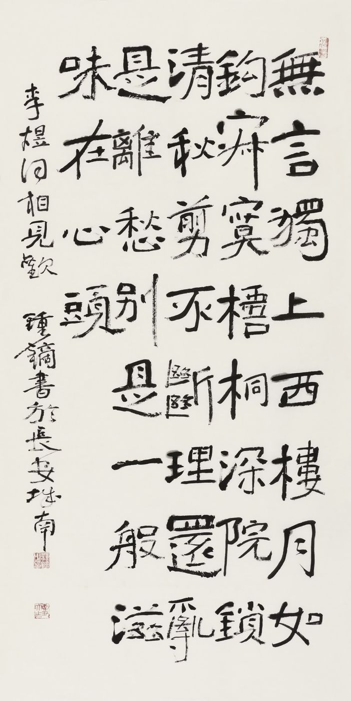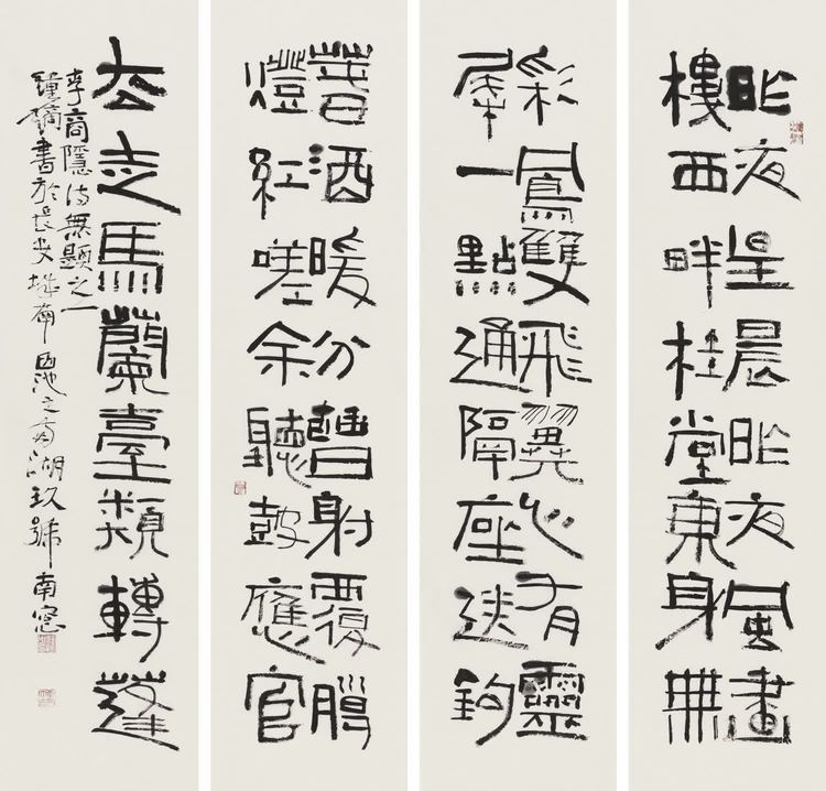 鐘鏑的鏑字有兩種解釋:一是指箭頭,也指箭;二是一種金屬元素,用于原子能工業(yè)和激光材料等;總的講是一種硬性物質(zhì),鏑前加一鐘,都與金石有關(guān),這對(duì)于篆刻家的鐘鏑來(lái)說(shuō),名字確實(shí)起得跟他的俊美一樣,不好挑剔。我第一次接觸鐘鏑,是在太白書院的一次書畫展上,有一個(gè)八條屏很是搶眼地占了半扇墻,那字橫七豎八,亂石鋪街,完全是目空一切的張揚(yáng)放大,用另類兩字結(jié)論頗為精準(zhǔn)。我問(wèn)鐘鏑是誰(shuí),朋友一指,但見一個(gè)小帥哥鶴立雞群地戳在一伙丑男之間,一派新潮感,我當(dāng)時(shí)最突出的感覺(jué)是距離二字。后來(lái)接觸多了,外表的強(qiáng)烈印象漸漸褪去,留下的是一個(gè)骨架硬朗,為人周正,心地良善,面冷心熱的硬派小生形象,我們的交道才多了起來(lái)。