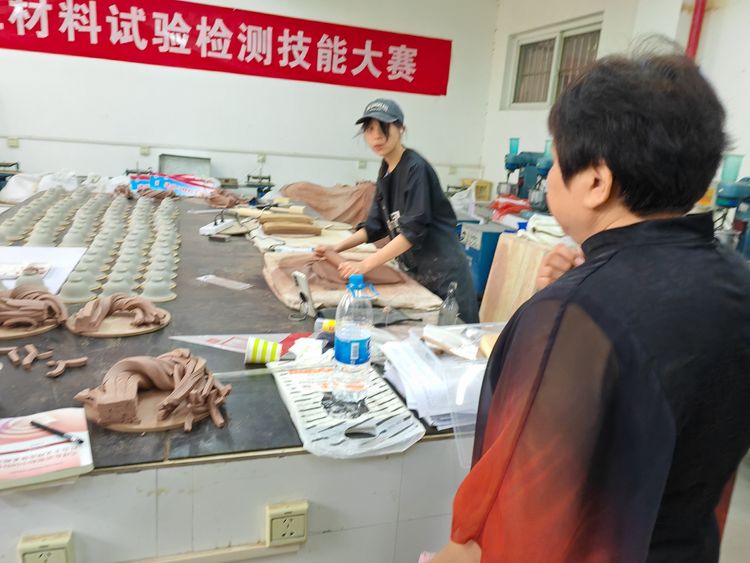 一行三人在范建峰院長和張媛老師陪同下,參觀了學院正在舉辦的師生書畫藝術展和陶瓷藝術學院工作室。