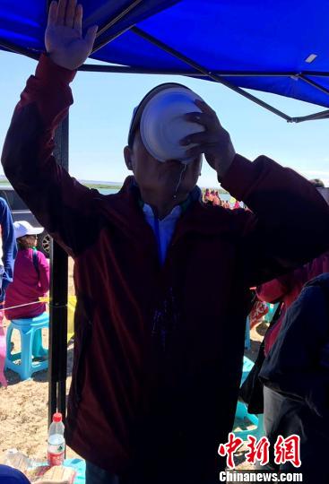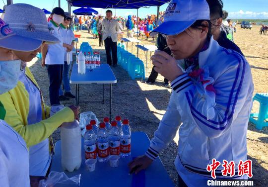 工作人員將牛奶、馬奶、羊奶、駝奶這四種奶裝在5個(gè)杯子里(其中有一種奶是重復(fù)的),20位參賽選手須在規(guī)定時(shí)間內(nèi)品嘗完畢,并提交答案。在最短時(shí)間內(nèi)全部嘗對(duì)的參與者可獲得3000元現(xiàn)金獎(jiǎng)勵(lì)。 史玉江 攝