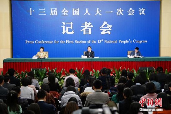 3月17日,十三屆全國人大一次會議新聞中心舉行記者會,環(huán)保部部長李干杰就“打好污染防治攻堅戰(zhàn)”相關(guān)問題回答中外記者提問。中新網(wǎng)記者 李卿 攝