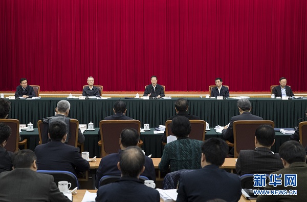 1月16日,推進(jìn)“一帶一路”建設(shè)工作會(huì)議在北京召開。國務(wù)院副總理張高麗主持會(huì)議并講話。中共中央政治局常委、中央書記處書記王滬寧出席會(huì)議。新華社記者 王曄 攝