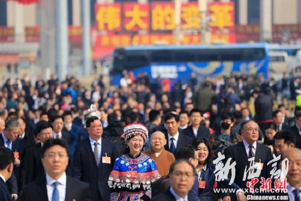3月8日,十三屆全國(guó)人大二次會(huì)議在北京人民大會(huì)堂舉行第二次全體會(huì)議。圖為參會(huì)代表步入會(huì)場(chǎng)。中新社記者 杜洋 攝