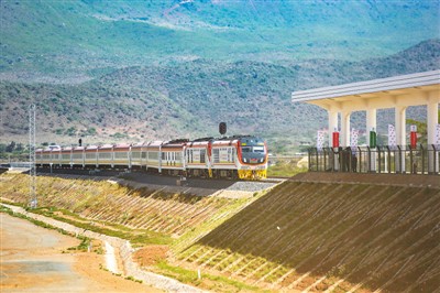 2019年10月16日,肯尼亞總統(tǒng)肯雅塔乘坐的列車駛?cè)雰?nèi)羅畢—馬拉巴標(biāo)軌鐵路(內(nèi)馬鐵路)一期工程麥馬修火車站。由中國(guó)企業(yè)承建的肯尼亞內(nèi)羅畢—馬拉巴標(biāo)軌鐵路(內(nèi)馬鐵路)一期工程當(dāng)日正式建成通車。