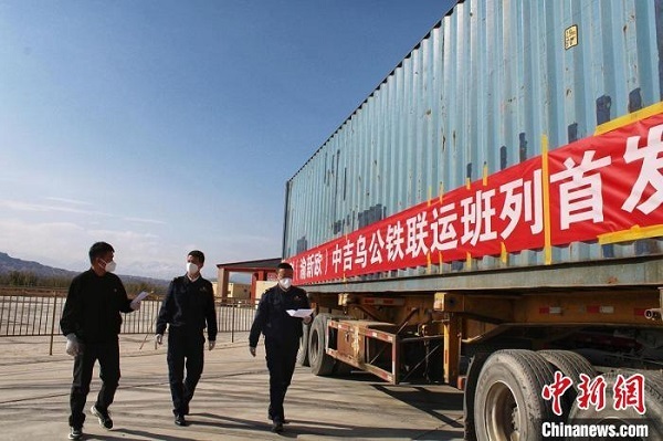 中歐班列(渝新歐)中吉烏公鐵聯(lián)運(yùn)班列首發(fā)順利出境。張趙琴攝