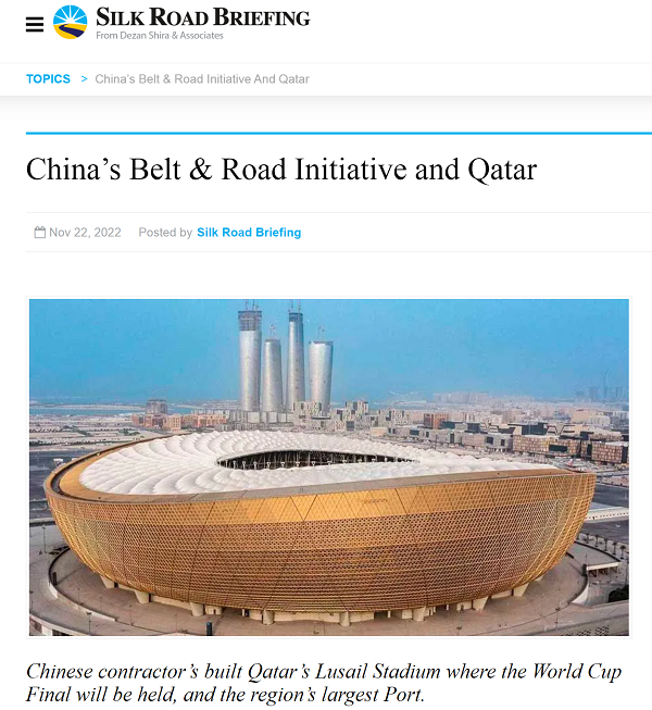 絲綢之路新聞網(wǎng)11月22日報道稱,正在舉辦世界杯決賽的卡塔爾自2014年起加入“一帶一路”倡議,并將卡塔爾“2030國家愿景”建設(shè)與中國的“一帶一路”倡議對接。協(xié)同戰(zhàn)略為雙方帶來了新的機(jī)遇,“一帶一路”倡議為多哈經(jīng)濟(jì)轉(zhuǎn)型提供了新的動力。