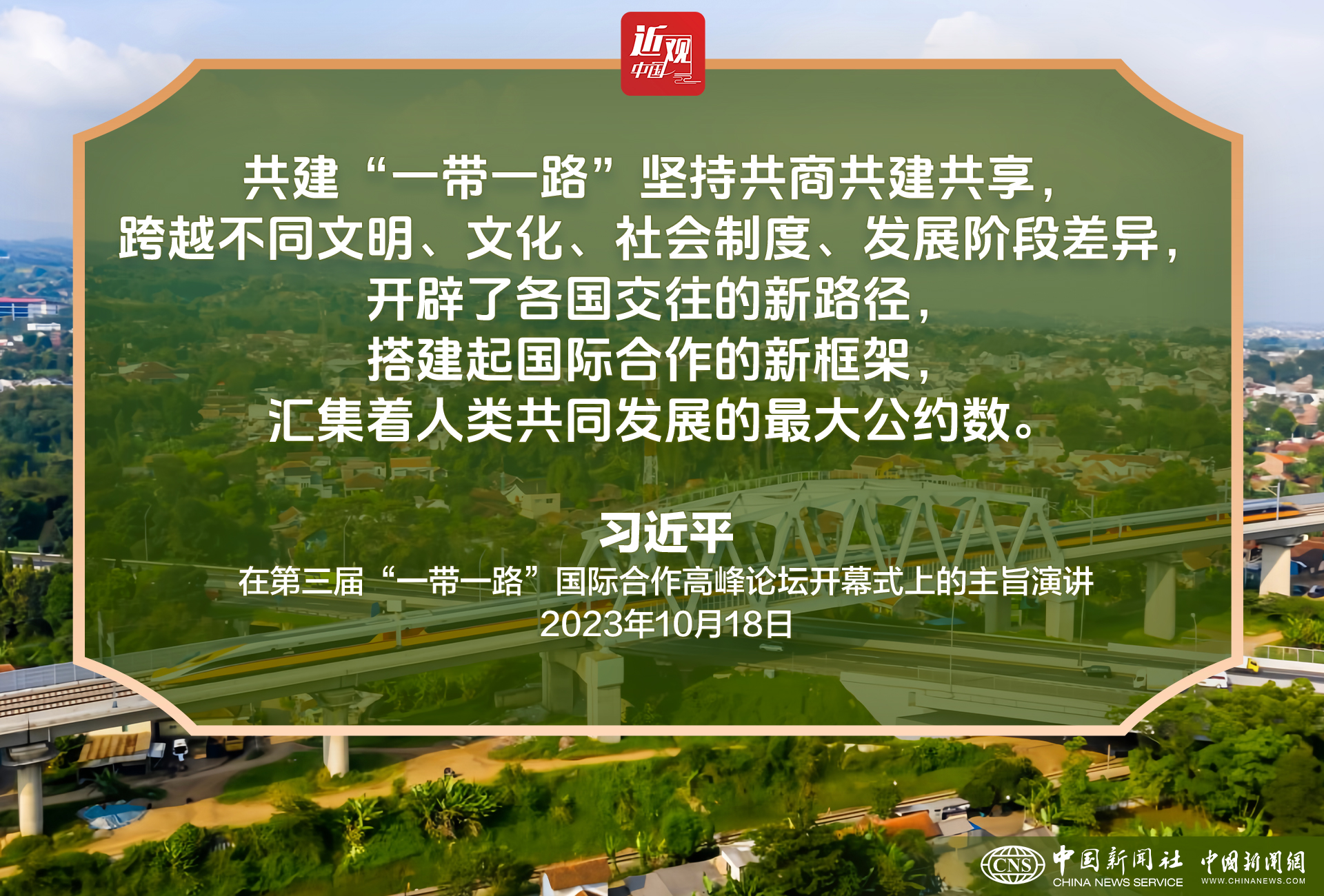習(xí)近平表示,共建“一帶一路”堅(jiān)持共商共建共享,跨越不同文明、文化、社會(huì)制度、發(fā)展階段差異,開(kāi)辟了各國(guó)交往的新路徑,搭建起國(guó)際合作的新框架,匯集著人類(lèi)共同發(fā)展的最大公約數(shù)。