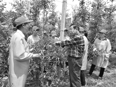 園區(qū)務工農(nóng)民學習蘋果管理技術