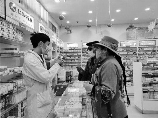 參保市民在定點(diǎn)醫(yī)藥機(jī)構(gòu)刷卡購藥。