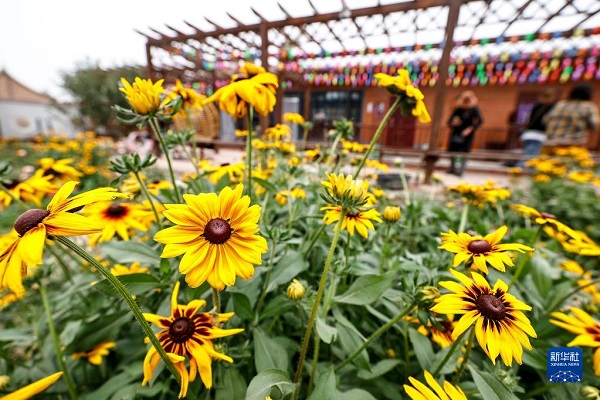 游客在寧夏吳忠市紅寺堡區(qū)柳泉鄉(xiāng)永新村的“共享庭院”里游玩(2021年10月3日攝)。新華社記者 馮開華 攝